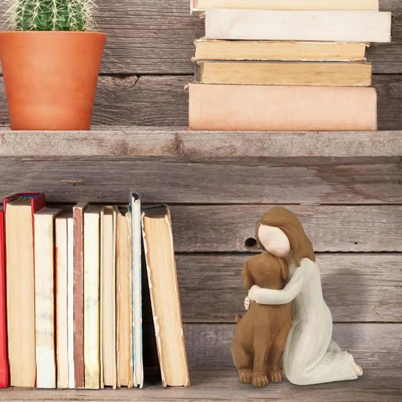Girl Hugging Dog Resin Statue